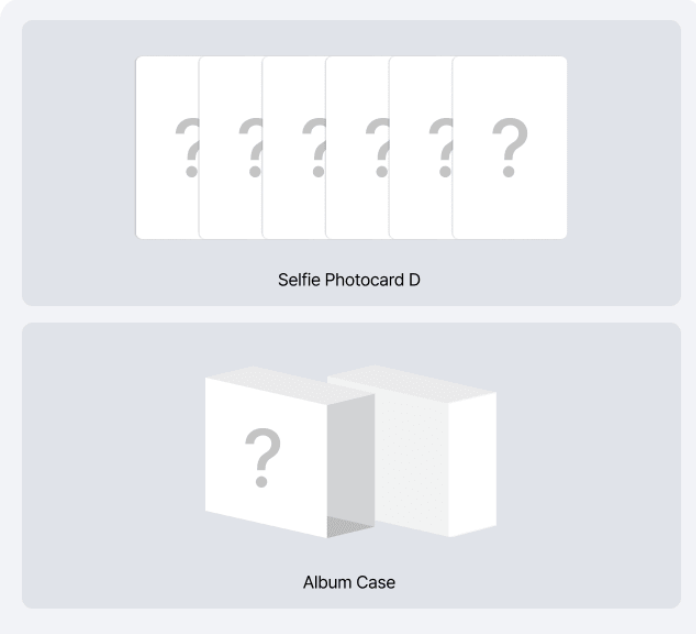 ✅Purchase a set of 6 to get 1 set of 6 unreleased selfie photocards D + 1 album case.